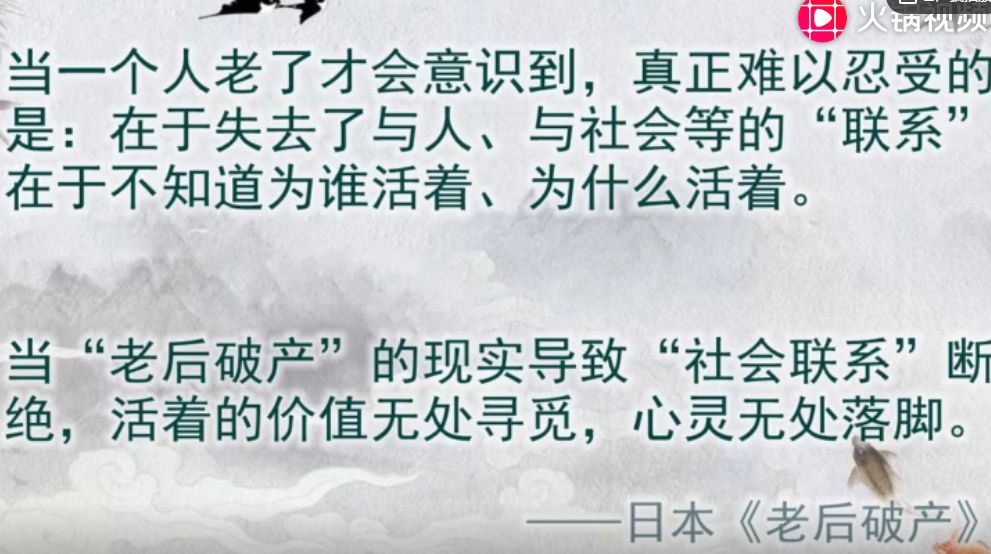 2023年这批人退休,真正的考验才开始到来,他们是建国以来出生人数最多的一代人。不仅不断划转国资充实社保和养老金,人社部也清楚的告知,渐进式延迟退休要“稳妥推进”。因为1963年的这批老人数量太大,需要新一代的年轻人延迟退休,多干几年,少拿几年,养老基金的收支才能平衡。这个道理和前面讲的日本婴儿潮退休的故事是一样的,都是因为生育率的原因,出现了交钱的人少,领钱的人多的问题。至于网上流传的未来养老金发不出那是纯扯淡,顶多延迟退休几年,注入部分国资,维持并不存在问题。未来我们也可能像日本老人一样,因为各种原因面临收支缺口,所以从年轻开始就要早做准备。关于怎么准备,杨燕绥教授也给过靠谱答案:“按照个人生命周期,先买房、后存养老金,早买房、多存养老金,买不起房的就多生娃。”为啥这么说呢?分析一下日本人养老金的原因不够用就知道了。经济衰退以后日本房价不断下跌,很多日本人不再买房,租房居住,很多人一辈子租房。老了以后领养老金收入下降,但房租逐年上涨,房租吃掉养老金的比例越来越大,大城市的老年人退休生活开始窘迫,钱不够的老人就开始靠捡垃圾维持生活。这就是考虑养老为啥要先买房,甚至钱富裕要买二套房做被动储蓄的原因。随着年龄的增长,老人越来越离不开人照顾,谁来照顾你又成了问题。最后不是自己的孩子照顾你,就是雇佣别人的孩子照顾你。照顾这件事对独居的有钱人从来不是问题,人家请得起雇工照顾自己。独居的没钱人才是问题,他们老了没钱请别人的孩子照顾自己,也没有自己的孩子帮忙。因为经济原因,现在国内多数老人都是自己孩子照顾,想必很多人都见过父母那代人照顾爷爷奶奶外公外婆。找人照顾,费用一般至少是养老金的2-3倍,多数老人根本负担不起。请不起别人的孩子照顾你怎么办,只能依靠自己的孩子。现在网上弥漫着一种论调,老了以后靠积蓄和养老金生活就行,生孩子养儿防老很无耻。有钱无所谓,普通人不要被带偏了节奏,过高的估计自己年老后的收入水平。