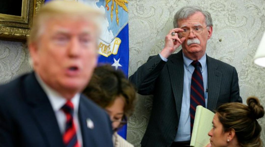 伊朗问题上,博尔顿反对与伊朗总统鲁哈尼会面,甚至妄图增兵中东,把战火引向伊朗。