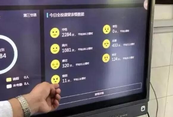 孩子们一天可能要做成百上千个表情,机器就会根据表情给孩子的情绪定性,老师一眼能看到这个孩子高兴、难过还是反感,然后再根据这一系列的数据去区别对待学生。