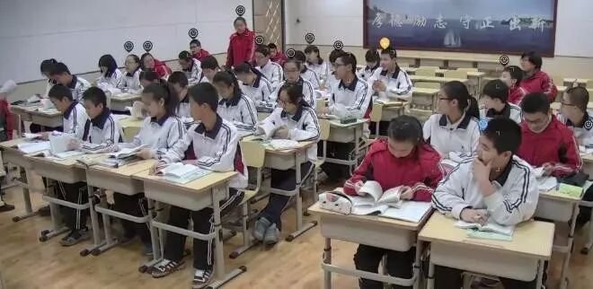 在下面这种教室里,AI通过高速摄像头,能捕捉到所有学生的坐姿、举手发言、低头抬头、站立情况,甚至连孩子们的表情是否开心,打了几个哈欠都会被记录下来。
