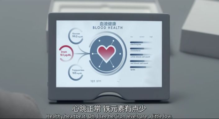 莎拉的妈妈能一键知道女儿的定位和身体状况,连身体里现在缺什么营养物质,都能一目了然。