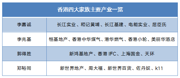 以李嘉诚为首的四大家族,通过房地产,控制整个香港的金融、电力、码头、电信。