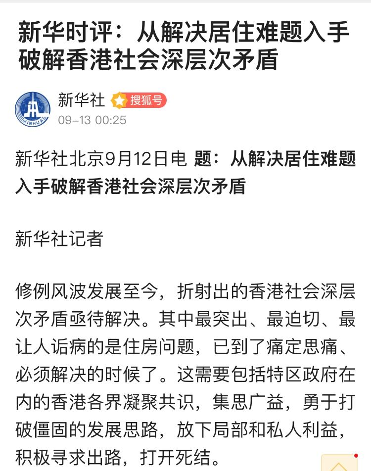 而《人民日报》文章指出,随着香港局势发展,广大香港市民除了进一步呼吁止暴制乱,更多人开始将关注的目光投向影响香港发展的深层次问题。住房,正是重中之重。