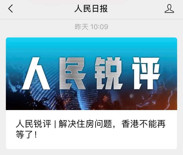 中秋节期间,中国的两大央媒——人民日报和新华社集体发声,直指中国香港的住房问题,文章指出,香港社会深层次矛盾,其中最突出的是住房问题,这需要各界寻找出路,打开死结,这个问题不能再等。