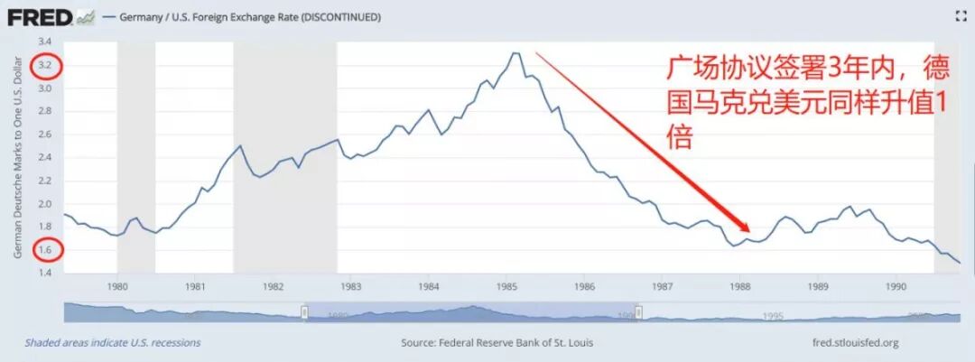 德国马克汇率波动,来源:圣路易斯联储.