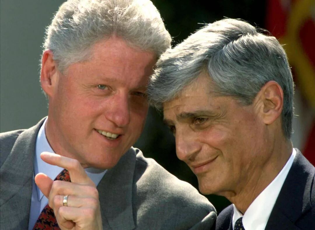 美国财政部长罗伯特·鲁宾与克林顿谈笑风生