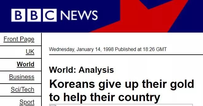 BBC对韩国黄金运动的报道,1998年