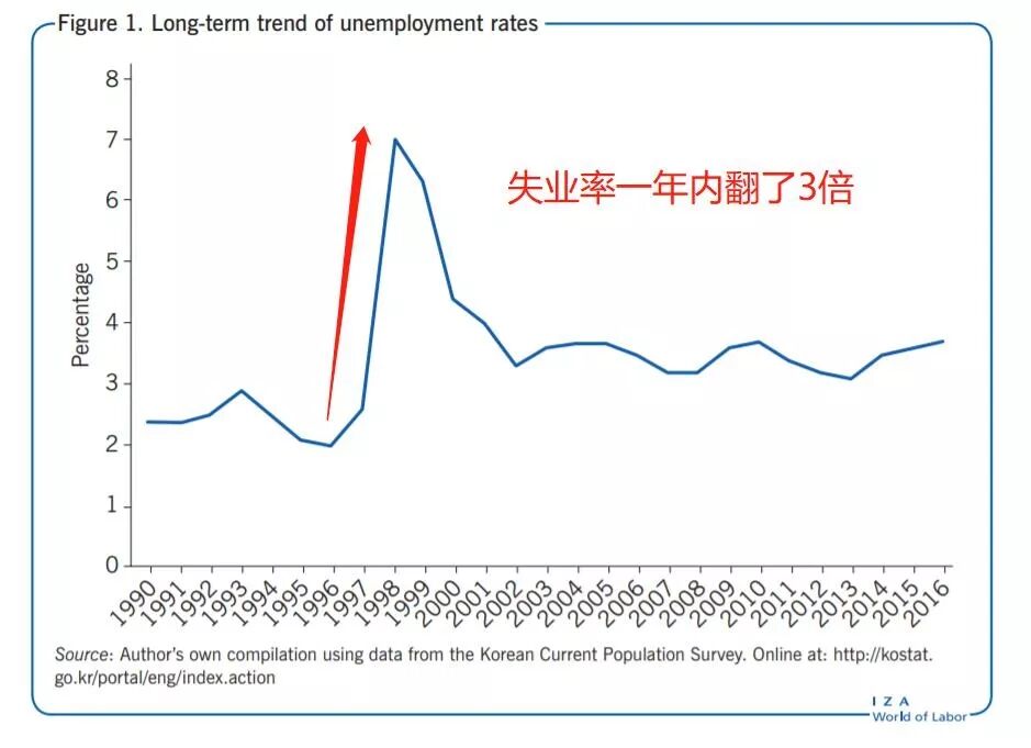 1998年,韩国有150万人下岗,失业率一度飙升到7%,每个月就有3000家企业倒闭,每天都有4200人失去工作。隔三差五就有失业大军高举“I.M.F = I’M Fired?(IMF=我被开除了?)”的指示牌上街游行。