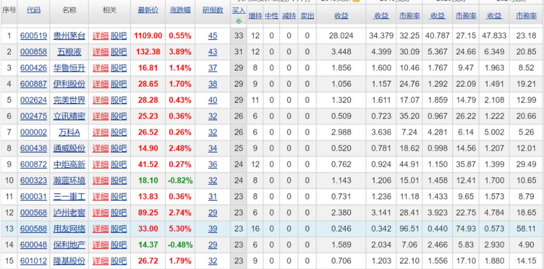 为了大家更容易理解,我以下面市场关注度高且预期比较一致的15支白马股为例,分析一下,这七个确定性因素是如何发生作用的。