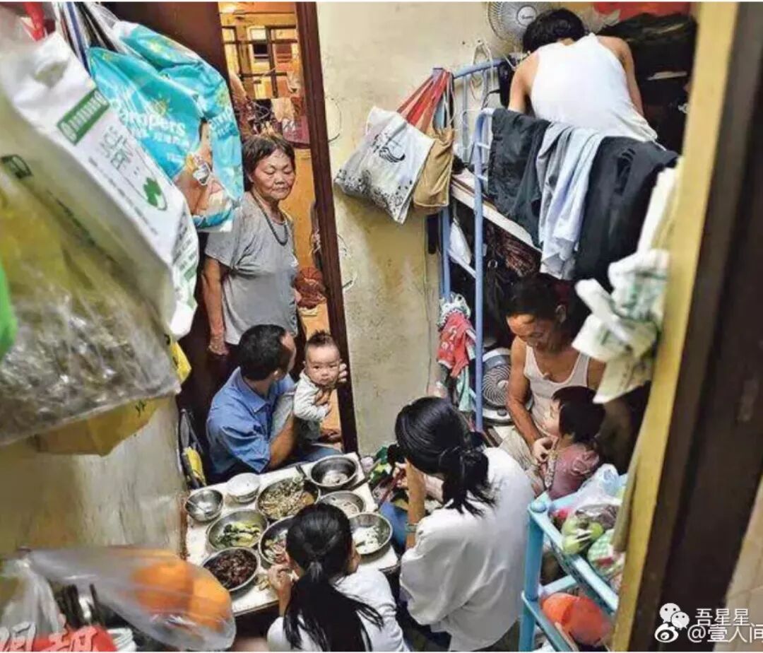 香港一家八口住在10平方米的房子里。