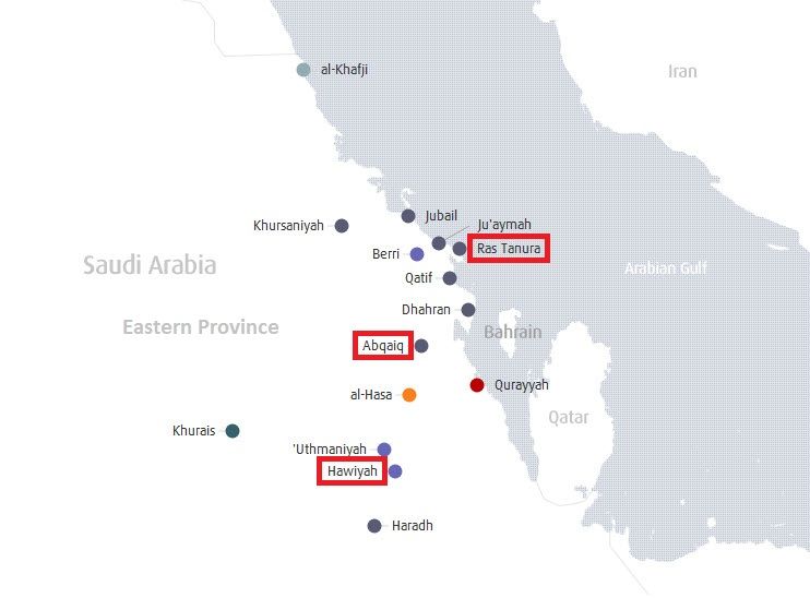 (沙特境内遇袭石油设施所在地Abqaiq和Khurais)