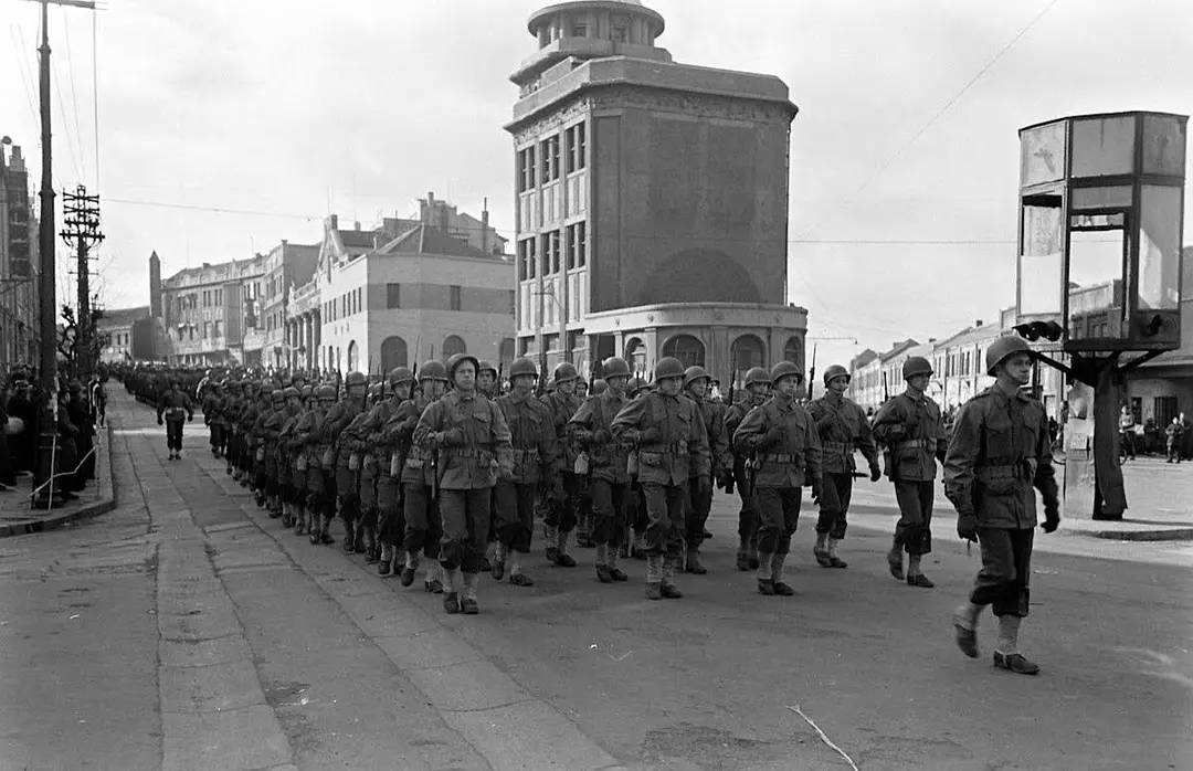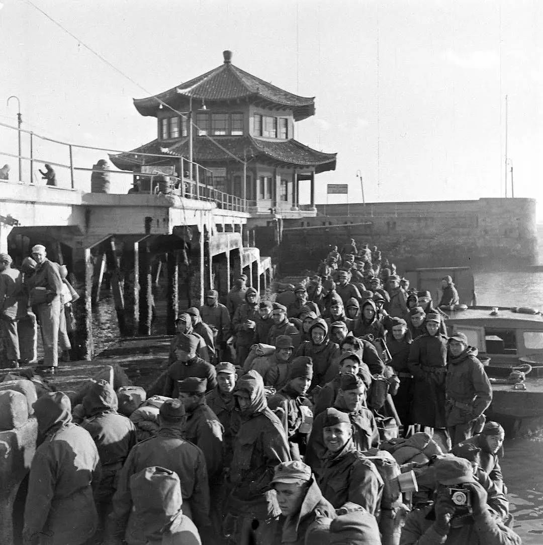 浩浩荡荡的美国大兵在栈桥上排起长龙,在青岛市民好奇而又惊恐的目光中志得意满地开赴市区。