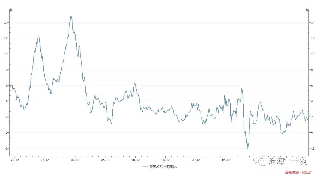 不难发现,跟二十世纪七十年代的通胀比起来,现在的通胀根本不算什么。