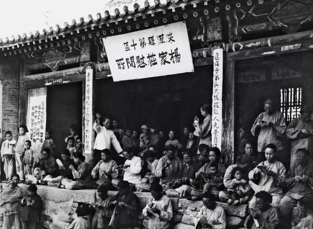 1938年,河北涞源,当地妇女为八路军战士做鞋。沙飞/摄