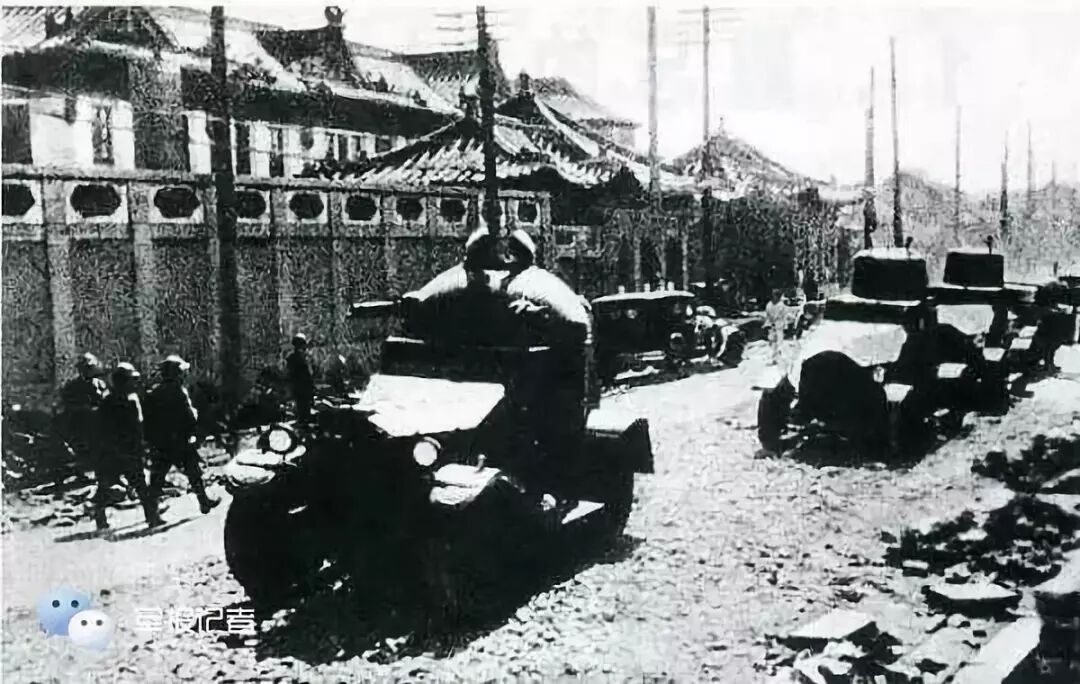 日军19日占领沈阳。图为日军装甲车开进沈阳
