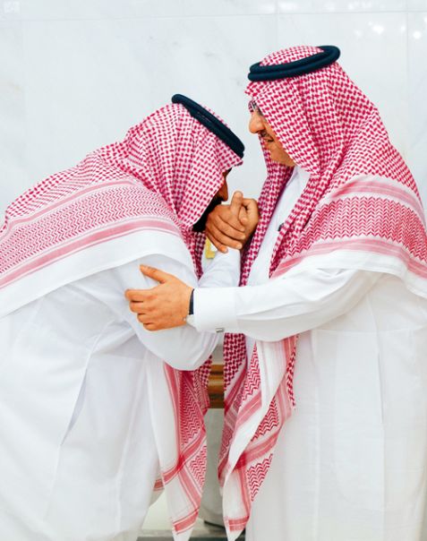 在镜头前,小萨勒曼跪下亲吻了堂兄的手,饱含深情地对纳伊夫说:“我将永远遵循你的指教”。