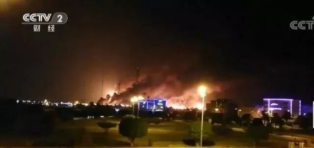 9月14日傍晚,伴随着几声巨响,沙特国家石油公司的两处石油设施发生爆炸,现场浓烟滚滚,火光冲天。