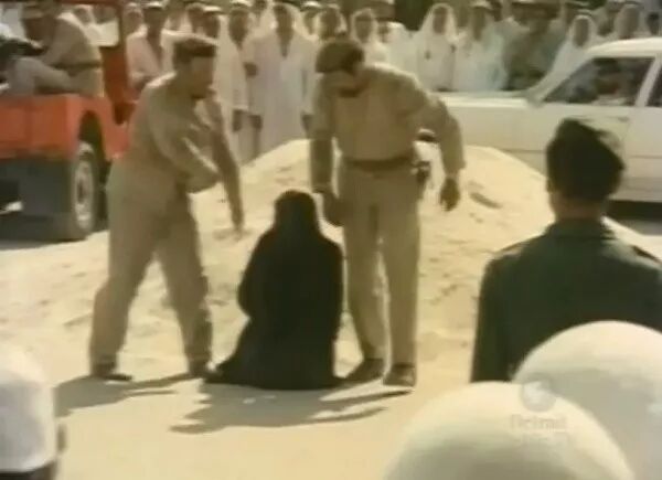 1977年7月的一天,一个全身黑袍的19岁沙特女孩,被众人带到了一个广场上。