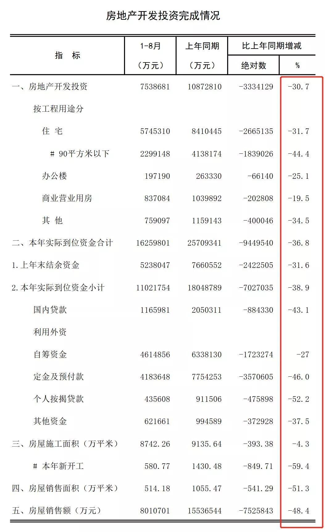 据透露,今年1~8月,海南房地产开发投资下滑-30.7%,商品房销售面积降低-52%、房地产销售额降低-48.4%。地方一般公共预算收入下滑-4.6%,而卖地收入下滑-9%。