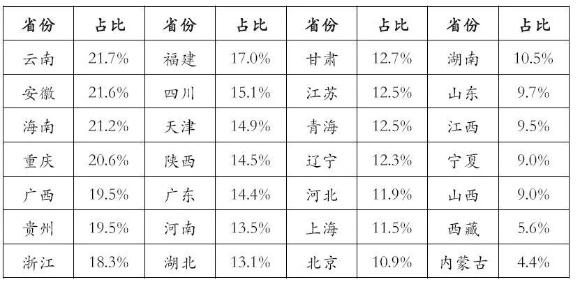 就省份而言,海南的房地产依赖度从全国第一滑落到第三。以房地产开发投资/GDP来衡量,今年上半年,房地产依赖度最高的省份分别是云南、安徽和海南,占比分别为21.7%、21.6%和21.2%。