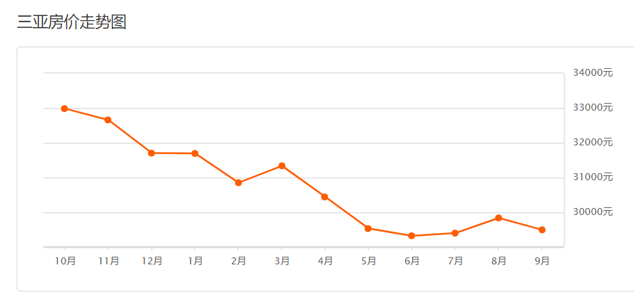 据安居客数据,2019年9月三亚二手房均价29520元/平米,同比下跌9.06%;海口二手房均价15210元/平米,同比下跌4.73%。