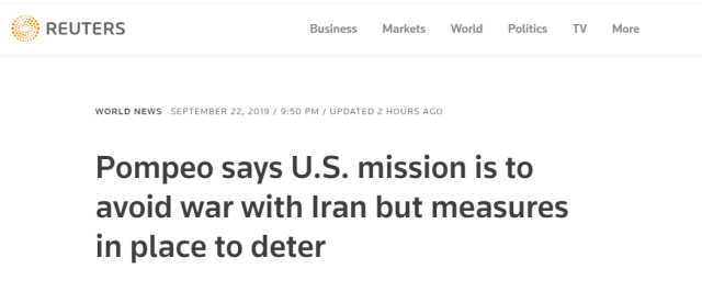 虽然美国和沙特都把这笔账算到伊朗头上,但无论是美国、伊朗,还是沙特等美国在该地区的盟国,截至目前均未展示出战争意图,相反各方在唇枪舌剑之余,都在努力地找台阶下。