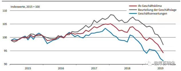 截止到2019年8月,德国经济衰退的迹象正在加速,德国商业指数8月份已经降至94.3点,这是自2012年11月以来的最低水平。