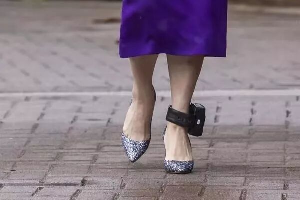 这是一双女士的脚,很精致。然而,吸引人目光的不是却是戴在一只脚脖子上的黑色装置。那黑色装置看起来有些大,一点都不适合,很扎眼。其实,那是一种监测设备,监控的是佩戴者的自由,学名叫“电子脚镣”。