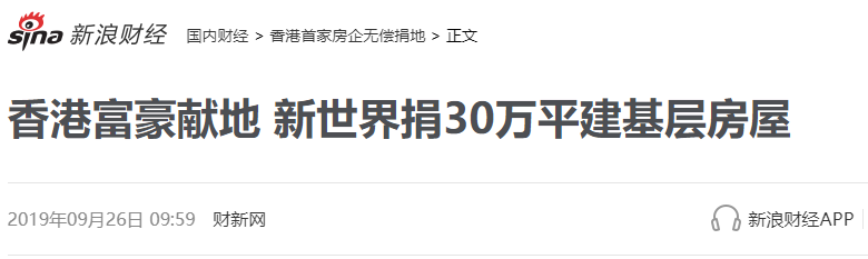 9月25日,香港“四大家族”之一的郑家,在自家地产公司举行的2019财年业绩新闻发布会上宣布,将与非盈利机构“要有光”合作,以象征式的1港币租金,捐出香港28,000平方尺地皮兴建社会房屋,以帮助有小朋友的低收入家庭。新世界发展执行副主席兼总经理郑志刚表示,28,000平方尺的建设只是第一阶段,集团将持续加码,合并捐出300万平方尺的更多农地帮助建设社会。希望当中100万尺可以给予“要有光”这类的非牟利机构兴建创意房屋。如果政府有需要用之建设公共房屋,新世界集团也欢迎作进一步研究。据资料显示,新世界发展持有农地面积约1,700万平方尺,300万平方尺的捐地计划相当于拿出了集团在香港农地储备的近1/5。香港地产大户捐地盖公屋的消息,引爆媒体,无数人开始自发的替郑氏宣传,商人爱港护港,为香港,殚精竭虑,夸赞郑氏慈善,“懂事”。根据全球楼价负担能力报告,香港已连续9年成为“全球房价最难负担”NO.1。也正因为房价高,社会矛盾不断,香港的年轻人看不到希望,甚至因此走上街头...如今郑家提出的这种方法,不失为一种解决香港住房问题的方法。但是,谁都知道,“四大家族”,作为超级资本家,可以说,就是资本的化身,怎么可能这么做事。今天,黄不邪就大家扒一扒这件事,让大家看清这件事背后的道道,不被于表象迷惑。新闻里写的很含糊,只说“象征式的1港币租金,捐出香港28,000平方尺地皮兴建社会房屋”。大家稍微搜索一下,就知道了,这一片看起来很多的28000平方尺的地皮,实际就是2900平方米的农业用地。说白了,就是不到5亩大的荒地。