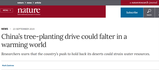 咱们聊过了瑞典的女活动家格蕾塔,在联合国大会上怒斥各国领导人,可以说,一跃为最年轻的环保领袖,被西方媒体视作未来人类的希望。这种疯狂吹捧,树立一个年轻偶像借此推动自己私货的行为,咱们中国人也算是身经百战,见得多了。特别的,咱们中国也因为绿化活动,获得了联合国环保卫士奖。就像网友的质疑:“一群在库布齐沙漠工作了几十年的中国人,在他们的努力下,库布齐沙漠面积的三分之一已经成为绿洲,他们没有去联合国,反倒叫一个没做出任何贡献,又看谁不顺眼的16岁女孩儿去,这是什么道理?”不仅如此,就在气候大会的当天,就是格蕾塔女士怒斥各国领导人,夺得无数眼球的当天,《自然》杂志还专门报道了中国绿化的消息,不过是偏向负面的:这篇不靠谱的文章,把《自然》的底裤再一次扒下了来了。(过去的自然杂志,曾经出现过很多的低级错误。)