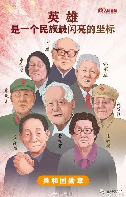 鲁迅先生曾经说过:“中华民族自古以来就有埋头苦干的人,就有拼命硬干的人,就有舍身求法的人,就有为民请命的人……他们是中国的脊梁。”是的,一切探索救国救民的先辈们都是中国的脊梁,一切为中华民族谋复兴,为人民谋幸福的人都是中国人民的的脊梁。今天获得共和国勋章的于敏、申纪兰、袁隆平、李延华、张富清、黄旭华、屠呦呦、孙家栋等四十二位人民英雄都是共和国的脊梁,都是新中国的“贵族”!