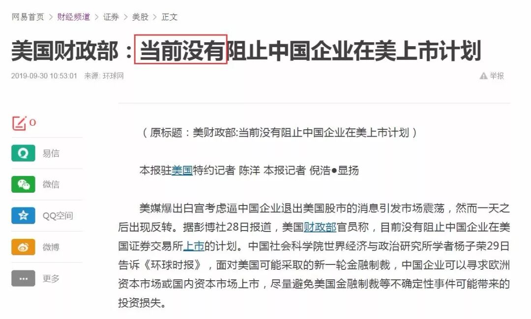 而央行不愿意大幅降息,根本原因还是因为近期CPI在高位运行,连续两个月同比涨幅达到2.8%(见上图),这个涨幅距离3%的警戒线非常近。正因为如此,央行在三季度例会通稿里,罕有地提及了物价问题,并连续三个季度提及了“把好货币供应总闸门”。当“把好货币供应总闸门”这类表述出现的时候,广义货币M2一般增速就会放缓,很难超过8.5%。本来,在中美第十三轮磋商之前,双方各释放了两轮善意,要么剔除了一些征税的商品,要么推迟了征税的时间,在“黄金周”之前看起来不会有坏消息。但“树欲静而风不止”,彭博社又突然报道了“白宫想让中概股退市”的新闻,引发阿里、京东、拼多多、百度等“中概股”的大跌。目前在美国上市的中概股有156家,市值超过1.2万亿美元。如果退市,将带来一系列复杂的法律问题,也会引发市场剧烈波动。