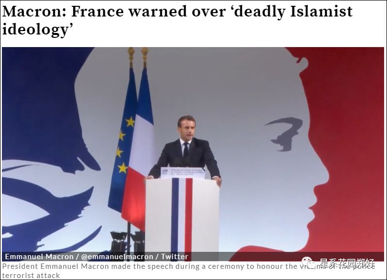 昨天法兰西共和国举行了悼念警察总局受袭案所有遇难者的活动。法国总统亲自到场发表了演讲。马克龙在讲话中对全国人民说,我们法国应该警惕“背离共和国法律和价值观”的激进的伊斯兰主义。