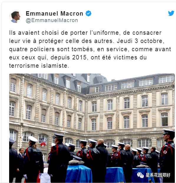 为了安抚那些无比寒心的首都警察们,马克龙总统专门为此连续发布推文。宣布“这是一场打击滋生伊斯兰恐怖主义及其致命活动温床的斗争。”
