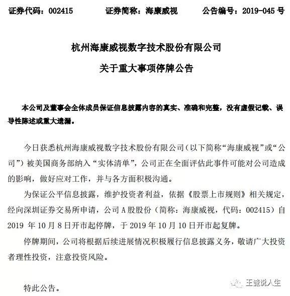 大多数中国人刚刚渡过了一个无与伦比的国庆节,才回到工作岗位,还没有从十一长假的狂欢中回过神来。10月8日,美国商务部宣布将海康威视、大华、科大讯飞、旷视科技、商汤科技等8家中国明星科技企业列入了实体清单,也就是俗称的黑名单。上了这个黑名单,就意味着若想购买美国科技产品,企业必须向美国政府申请许可证,很可能会被美国政府拒绝。