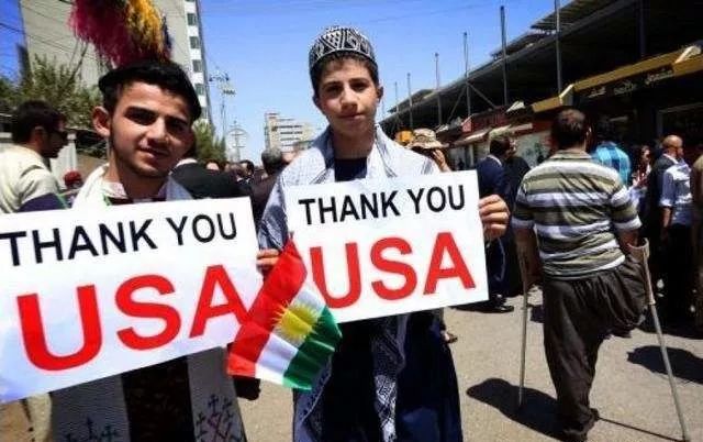 公投前夕,虽然美国已经明确表示不支持本次伊拉克库区的独立公投,但是,库尔德人“感谢美国”的标语仍然随处可见。