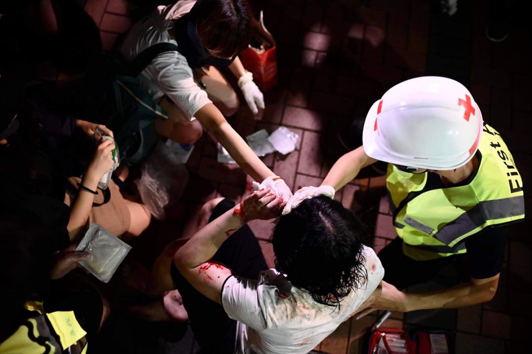 对“异见者”拳脚相加、滥施暴力的行径在香港已如病毒般蔓延。香港民间、部分港媒将如是行为命名为“私了”。自“私了成风”起,不仅该“了”的没“了”成,就算安坐家中或车中,大祸都能随时降临。据港媒报道,近期香港各区发现暴徒在道路设立非法路障,拦截车辆,肆意翻查,试图找出休班警员、警署和反暴力市民,进行“私了”;更有示威者在香港仔海傍道做车匪路霸,逐车搜查,如有“捐款支持”意向,交买路钱(5000-10000元)即予放行。另有在港人士指出,部分黑衣人扮作执法者,成群闯入居民楼“拍门搜屋”。两日前,暴徒在旺角街头堵路横行之际,有成员疑被高处掷下的玻璃樽击中头部,随即数名黑衣人逐户拍门,要“揪出掷物者”;另一撮示威者则闯至长沙湾苏屋邨,“询问”居民是否愿资助“革命”,奉上钱财方能“破财消灾”。“内容审查”到了什么程度?凡是在住宅楼下发现有进出人员讲普通话,一律将其住宅信息、入门密码等标注于地图之上,以便来日“造访”。当晚,一名的士司机途经深水埗,见暴徒四处捣乱,疑因受惊踩错油门、误伤行人,随即被拉出车厢围殴、遭铁槌等硬物击打后惨成血人,观者无不悚惧;同日,香港某艺人因拍下暴徒毁烂中资银行柜员机罪证,被围打至头部出血;更有市民当街被淋腐蚀性液体毁容。此外,自9月末至今,有人因“挥动中国国旗”被打至遍体鳞伤;在九龙塘、湾仔、铜锣湾,有数名男子因不满示威者扰乱社会秩序而当街发声,随即一一遭“私了”:或被黑漆喷面,或受“私刑”至头破血流、被送院治疗。光天化日之下,暴徒呼啸而上,以伞柄、铁枝、垃圾桶肆意施暴已近乎“常态”,作案后还不忘以“文宣”栽赃陷害受害者,并视作战绩大加宣扬。当着孩子面,把孩子父亲打得头破血流;对着摄像头,把无辜路人殴至不省人事;甚至在社交平台上传授“私了”秘笈。犹记此前示威者代表出言强调所谓“和理非”:“不会单纯因为政见不同而作出攻击”——伪善骗票,机关算尽,现实却给出了“人权”面具之下,肆虐逞威、令人发指的本相。 香港深水埗,一辆的士在暴徒恐吓下驶上行人道(图源:香港文汇报)