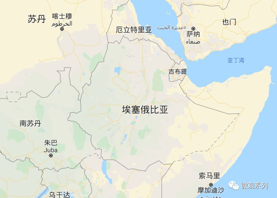 从地图上我们就能一目了然,埃塞西面没出海口,东面是索马里,北面是吉布提和“厄立特里亚”