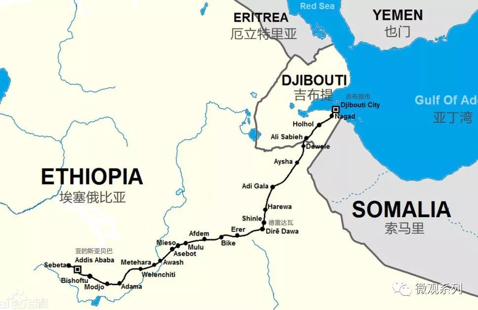 这个“亚吉铁路”,从埃塞的首都“亚的斯亚贝巴”,一路直接通到“吉布提”的出海港