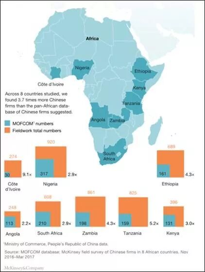 可以说,中国企业遍布在非洲土地的每一个角落,覆盖非洲53个国家和6个地区。涉及到的企业小到五金服装,大到电子信息,家电,互联网和采矿农业,几乎无所不包。