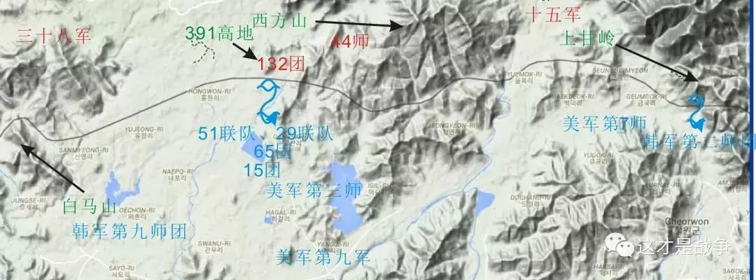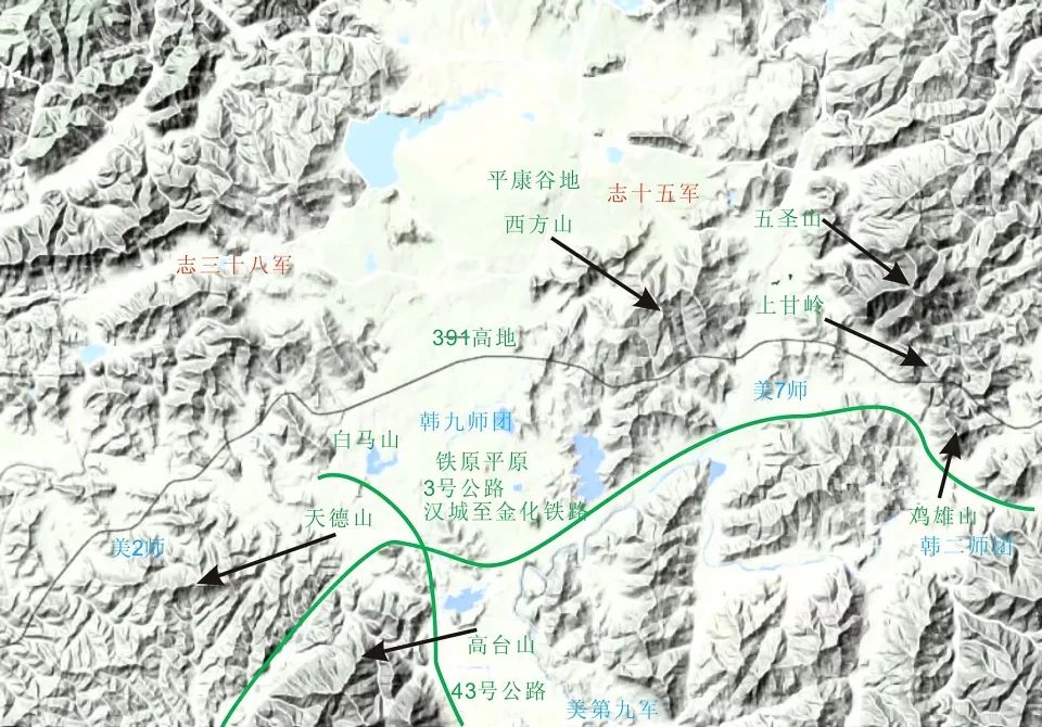 这里到底有多重要呢?从下图一眼可知。391高地南侧全是平坦的开阔地,失去391高地,美军第九军在鸡雄山和白马山之间将无险可守。