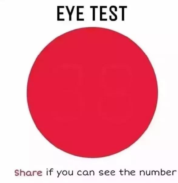 1、仔细看着下图,红圈中有数字你能看见吗?看见88表示视力很好,看见38表示左眼弱,看见83表示右眼弱,看见33表示视力欠佳。