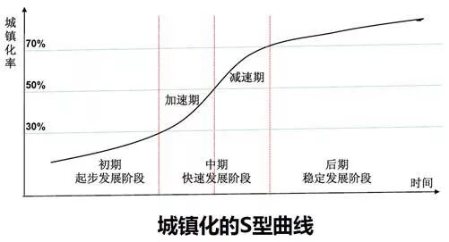 一般来说,城市化进度为一个 S型曲线,一旦过了加速期,城市化的上升速度就会持续放缓,直至一个国家城市化的基本定型。