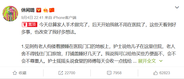 前段时间,拥有460万粉丝的微博大V@休闲璐,在深夜发了一条微博,引发400万人关注,2万多人分享,6万多条点赞。