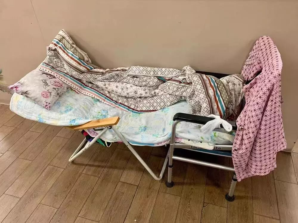 有病人家属为了照看自己的家人,又不舍得去外面租房,就用两张椅子拼成一张简易的“床”,在这里度过一夜又一夜;