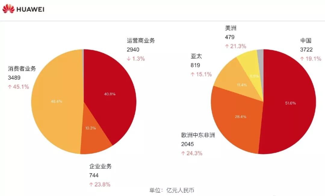 目前,华为的消费者业务(手机、电脑等设备)已经超越运营商业务,占据华为营收的48.4%,而运营商业务占据40.8%,企业业务占据10.3%,可以将华为理解为手机厂商和通信服务商接近于1:1的结合。