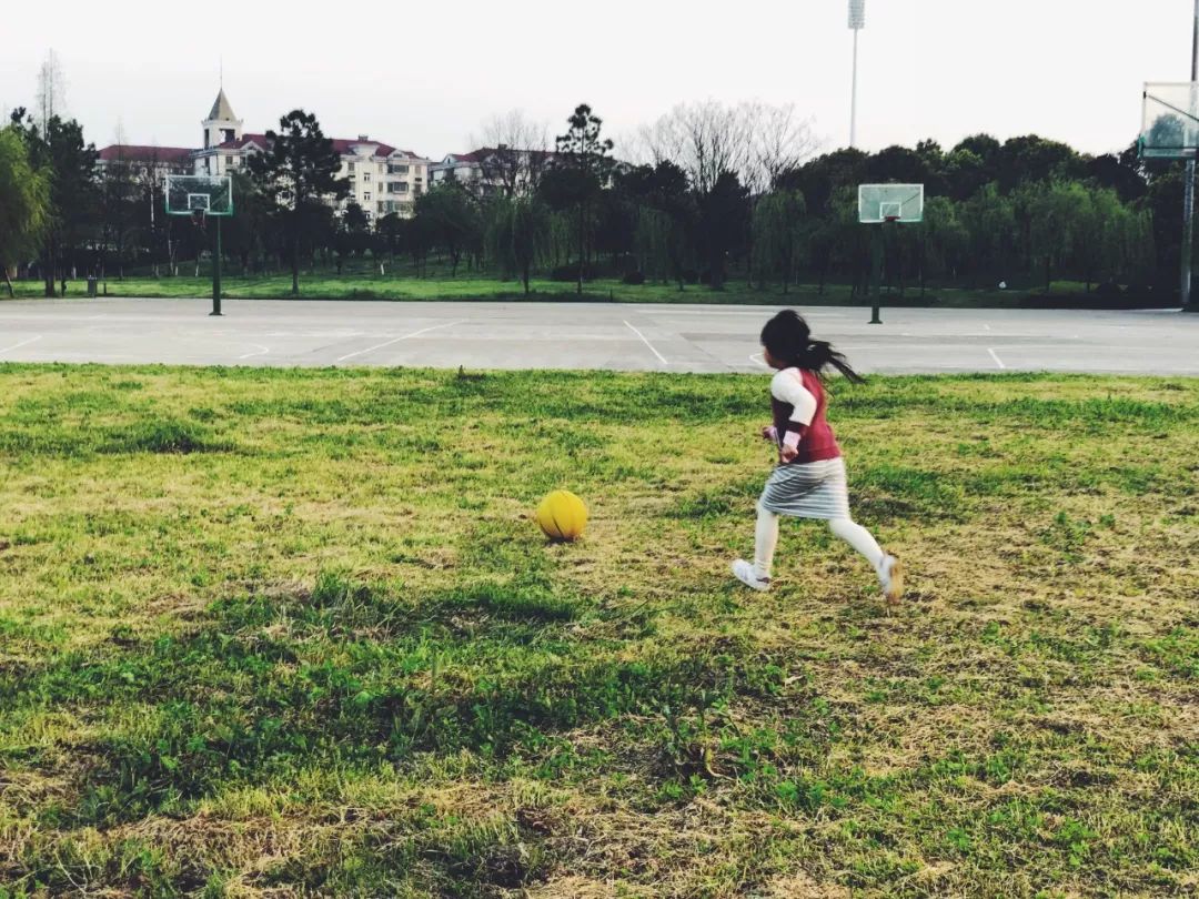 女儿在院子里玩耍,突然被一个皮球砸到头,吓得当场哭了出来。