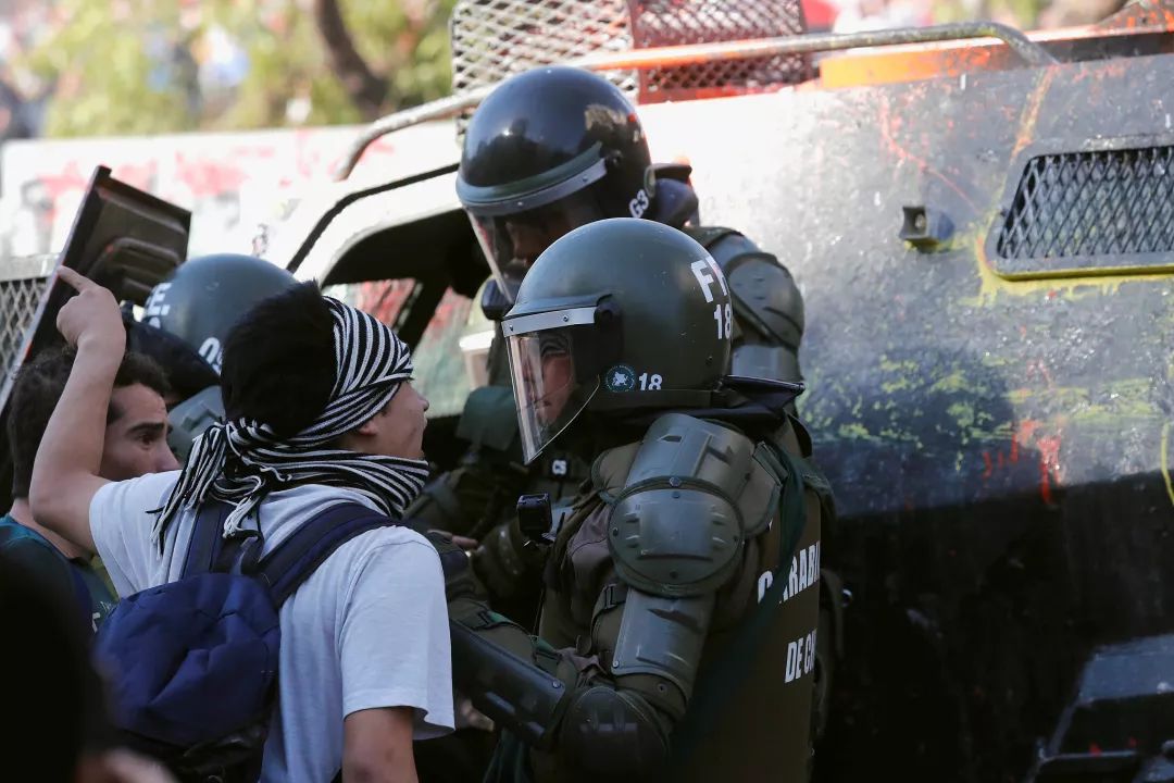 (当地时间2019年10月24日,智利圣地亚哥,智利由地铁票涨价引发的骚乱不断升级。)