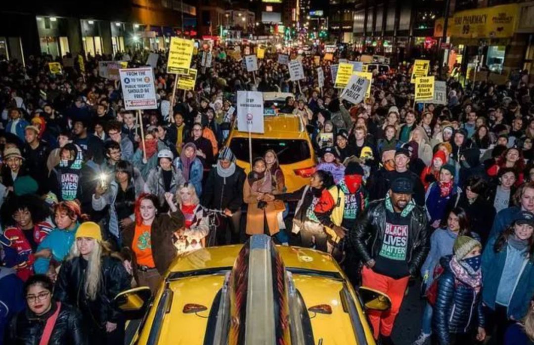 本次示威,起因是反对警察暴力。10天前,15岁的黑人小伙儿本杰明·马歇尔在去地铁站台拿背包时,被纽约警察围殴。这一幕被旁观者拍成视频,上传到了社交媒体,惹怒了美国人。
