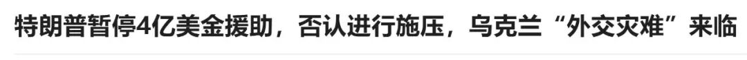 而且就在特朗普和泽连斯基打电话的前一周,特朗普突然向白宫下达指令冻结对乌克兰的一笔4亿美元的军事援助。